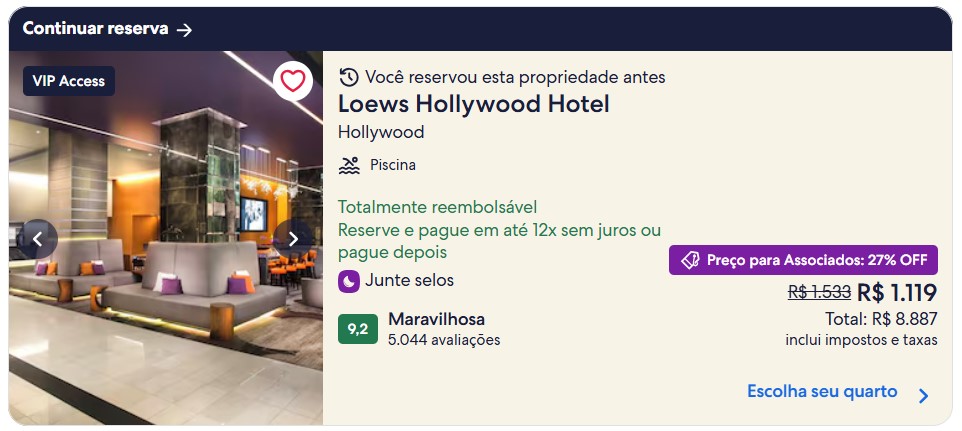 Na hora de reservar o Loews Hollywood Hotel, vale a pena olhar além do preço da diária. Forma de pagamento, política de cancelamento e como as taxas aparecem na finalização da reserva fazem bastante diferença no orçamento da viagem.